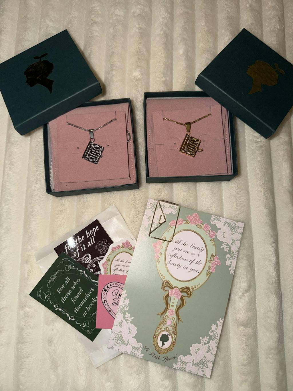 ✿Stainless steel flat curb chain necklace with 1 pendant. One book pendant with the engraving 'For all those who found themselves in books.' & pretty details on the cover. LPS logo is engraved on back of pendant. Comes in silver & gold. Perfect for all angels whose hearts are filled with the joy books provide & find themselves within each line. *PLEASE READ*: This book pendant OPENS like a real book! It is secured close with a clasp that can be opened (read below or watch the video to see how to open it properly). It has 3 back-to-back pages inside (total of 6 pages) where you can use double-sided tape to put your favorite book cover or quote on. PLEASE HANDLE THE HINGES WITH CARE! They are not extremely delicate, but due to the welding, please do not be rough when handling the pendant & open the book with care.